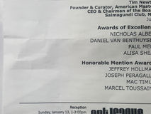 The "Haitian Slave Revolt Ceremony" painting was a finalist at the 59th Long Island Artists Exhibition hosted by the Art League of Long Island on January 2019. 228 artists submitted 721 images, out of which 60 works were selected to be exhibited. The juror, Tim Newton of the Salmagundi Club, also selected Marcel's first straight lines painting as the recipient of their "Honorable Mention Award".